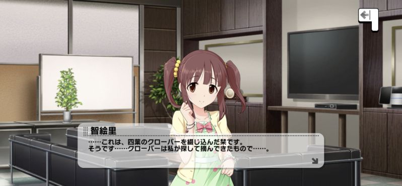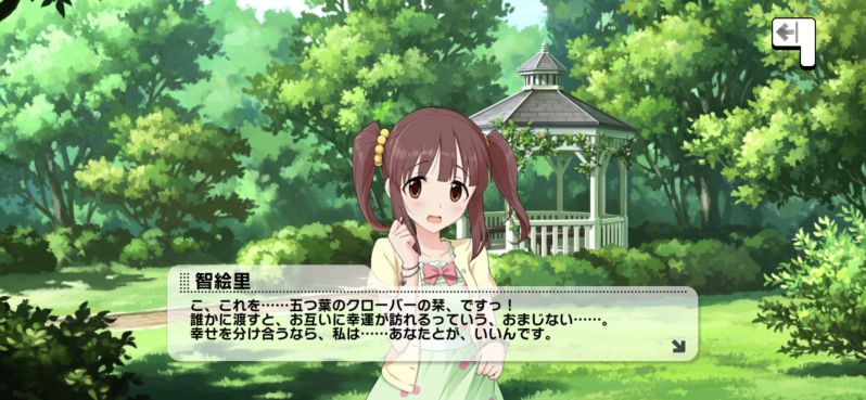 恒常SSRとして登場しました。智絵里の象徴ともいえるクローバーがふんだんに使われている衣装です。