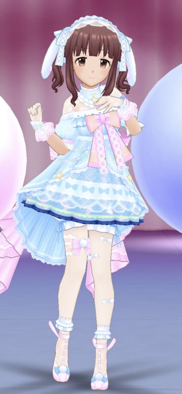 智絵里が好きなウサギをテーマにしており、ロップイヤーのカチューシャがかわいらしい衣装です。