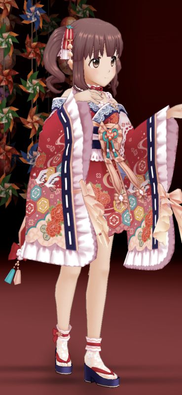 モバマスの[ブレイブステージ]のようなカッコイイ衣装が見てみたいです。智絵里の衣装はどれも可愛らしいものですが、かっこいいものも似合うと思います。