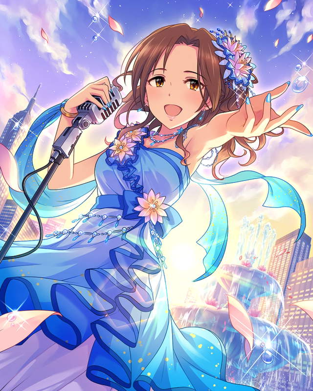 モバマスの[夜明けのディーヴァ]特訓後のようなドレス衣装で髪を下ろした姿が見たいですね。